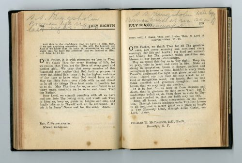 This prayer calendar belonging to Nathalie Gray is notable because it documents the death of her husband, Bowman Gray, Sr., at sea. The written text reads, “Bowman left us last night.”