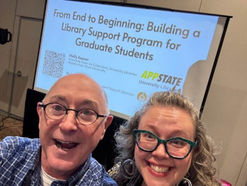This was my last NCLA as an Instruction and Graduate Student Support Librarian! It was a joy to co-present with Tanya and Carolyn on the history of Writers’ Camp @ ZSR on Wednesday and to give my final conference presentation on Friday with Molly as we discussed the history of ZSR’s work with graduate students! One of the best sessions I attended was an updated presentation by Elon librarians on their assessment program! You can learn more about the program in the Elon Student Learning Assessment Guide